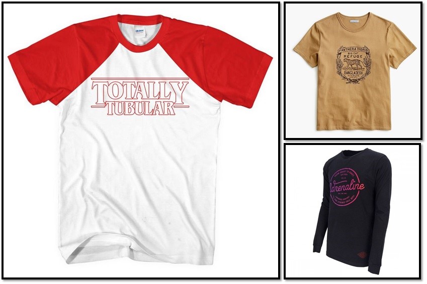 Áo thun thông thường có thân áo được làm từ 2 tấm vải riêng biệt, còn áo thun không đường may sương (Tubular t-shirt) được tạo ra từ vải dạng ống với thân áo liền.